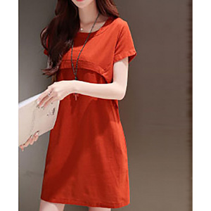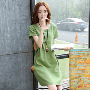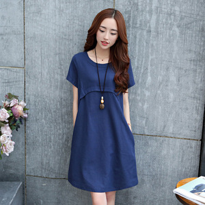 越境貿易婦人服綿麻ワンピース薄手半袖ゆったりウエストミディ丈ワンピース森ガール風切り替えAラインワンピースおしゃれ