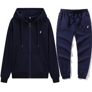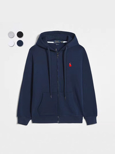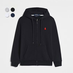 刺繍ポニーRFカシミヤカーディガン男性春秋モデル帽子付きジッパーコートとズボンセット