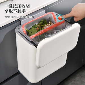 新型二層式壁掛けキッチンゴミ箱、ワンタッチプッシュ式、内側ゴミ箱付き、吊り下げ式生ゴミ・トイレ用ゴミ箱、フリップトップ式