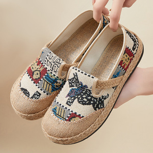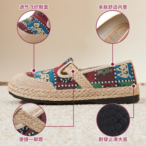 女性のための靴 2025 夏の新しいカジュアルハーフスリッパエスニックスタイル織靴卸売ドロップシッピング通気性と快適な女性の靴