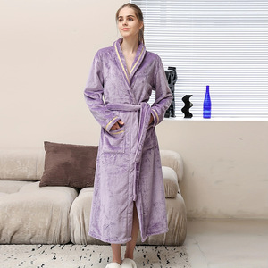秋冬の女性フランネルの寝衣の浴衣の朝の長着は厚いベルベットの保温の長いサイズのカップルの家の服のパジャマを着ます。