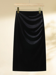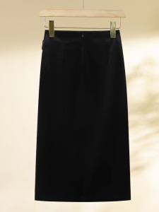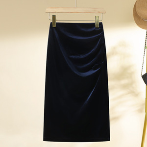 金のベルベットの気質の半身のスカートの女性の2024年の秋冬の職業の中で長いタイプの包みの尻はやせているまっすぐなスカートを現します。