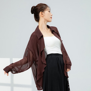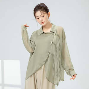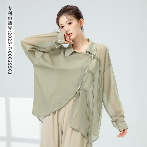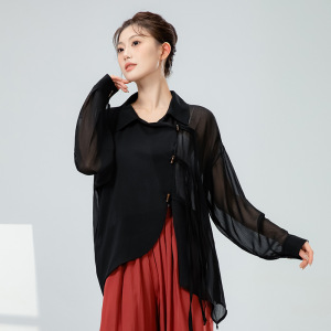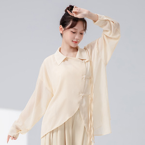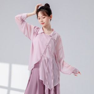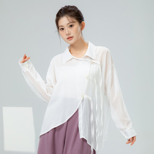 モダンダンスのトレンドスループロペラボタンシャツ新しいルーズ不規則カジュアルトップ中国古典舞踊服