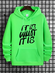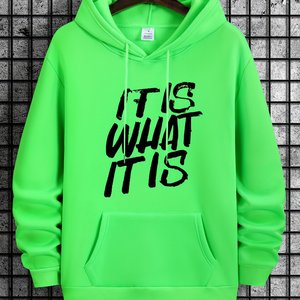男性カジュアルベージュのパーカーは、「IT IS WHAT IT IS」と印刷されています。