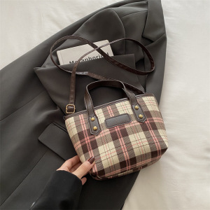 軽くて豪華な格子縞の手提げバケツの包みの女性の経典の大衆の設計の洋風の質感のシングル肩の斜めのショルダーバッグ