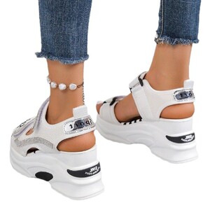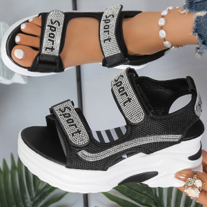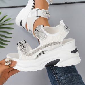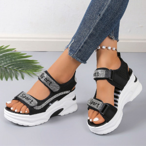 ビスケットの厚い底のサンダルの女性の2025年の夏の新型のカジュアルなマジックはスポーツの風のサンダルの越境する大きいサイズの現物を貼ります。