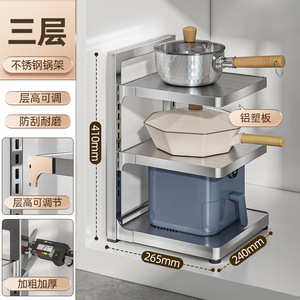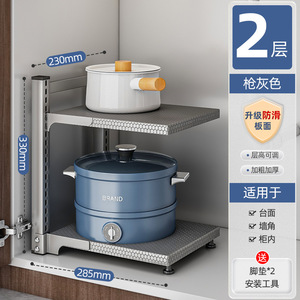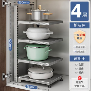 銃灰厨房鍋具棚多層物置棚折り畳み可能多機能収納鍋棚水槽下床台面