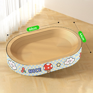 共同ブランドの巨大な楕円形猫爪とぎボード、猫の巣、猫のおもちゃセット、耐摩耗性、脱落しにくい、段ボール製猫爪とぎボード