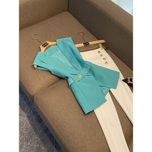 2025年春季爆款时尚新设计腰带无袖修身气西装马甲背心女