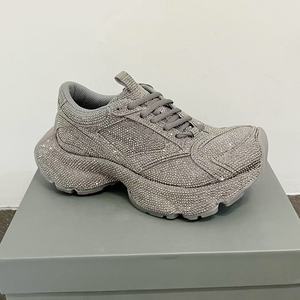 2025年初春フルダイヤモンド厚底ストリートスタイルダッドシューズレディースイントレンディカジュアルシューズ身長を伸ばすシルバーラインストーンシューズ