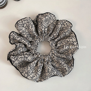 二重層花柄ヘアゴム - ブラック