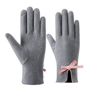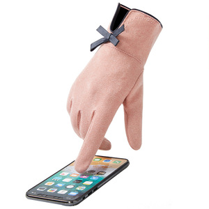 徳絨毛保温手袋の女性は秋の冬のネットの赤い蝶結びの屋外で車のタッチパネルの手袋を運転してクロスボーダーします。