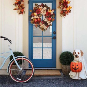 独立駅の子犬のカボチャのキャンディーの碗のクリスマスの置物のベランダの入り口は贈り物の樹脂の工芸品を保管します。