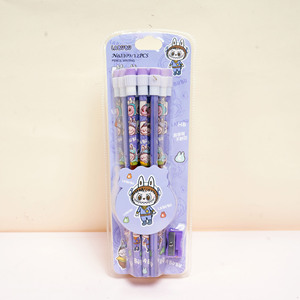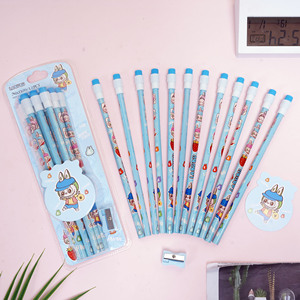 1109布鉛筆漫画高颜値LABUBU大皮頭鉛筆12本HB鉛筆を入れて鉛筆削りナイフを送る