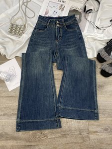 太ったMMの小さいラッパの広い足のジーパンの女性の春秋の大きいサイズはゆったりしていて、やせています。