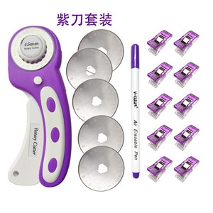 Huajari 45 ミリメートル回転ホイール布ナイフ紫 * 1 + テキストブレード * 5 + 小さな波状ブレード * 1 + 紫色の小さなクリップ * 10