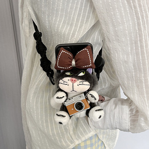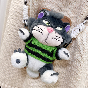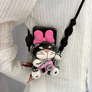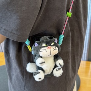 ルシファーの猫の漫画の携帯電話のバッククリップのひものぬいぐるみのペンダントの殻の斜めのショルダーはチェーンにまたがって車をかけることができます。