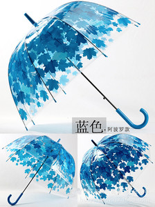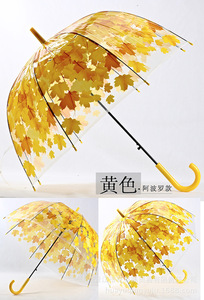 透明プリント傘 23inch アポロ傘 自動開閉式長柄傘 厚手POE素材 おしゃれな紅葉柄透明傘 卸売