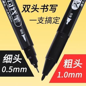 双頭線筆美術専用黒マーカー児童絵画色落ちしない防水速乾水性チェックペン