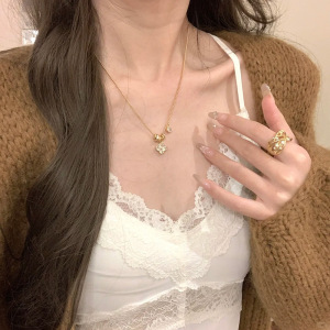路通満ドリル四葉草花ネックレス女2025年新型爆発金小衆高顔値爆発金鎖骨鎖