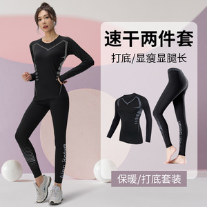 「速乾衣女登山スキー冬保温インナー上着スポーツスーツガードルヨガ服長袖底打ち