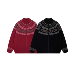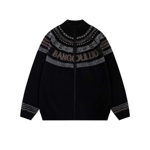 アメリカのレトロなぬいぐるみのアルファベットのジャカードのカーディガンのニットコート
