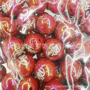 16 ミリメートル赤アクリルプリント pdrapper ストレート穴ラウンドビーズ diy 携帯電話チェーンビーズペンアクセサリー