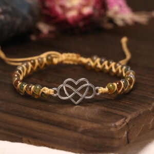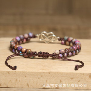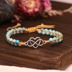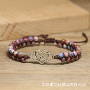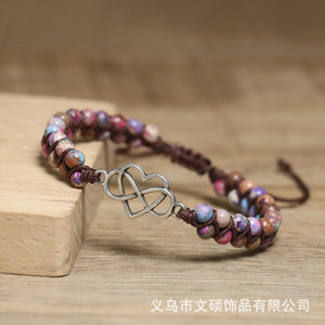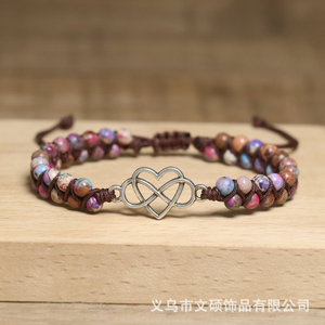 レトロなボヘミアン天然石手作り二重編みブレスレット帝皇石ビーズブレスレット無限愛のアクセサリー