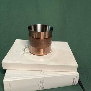 創意的に腰を収めてマグカップのステンレスのコーヒーカップを収めます。