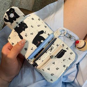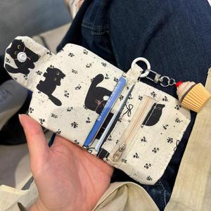 新品可爱い猫多层収纳カードケースストラップ可小銭入れズックイヤホンバッグウォークマンバッグ证カバー男