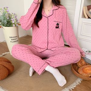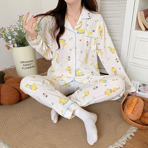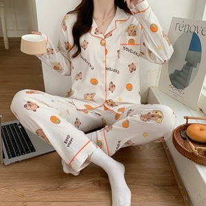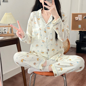 海外クロスボーダー専用パジャマ女性春と秋の雲綿の襟折りカーディガン長袖のゆったりとした甘い家庭服セット