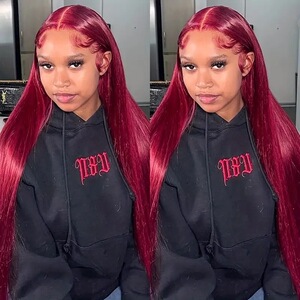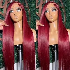クロスボーダーの新型欧米ファッションのワインレッドのかつらの中で、長いストレートの髪の前のレースのかつらの全頭カバーを分けます。