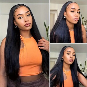 長いストレートヘアは前髪を平らにしたり、斜めにしたりすることができます