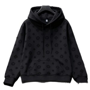 2025年春秋冬新作、全面プリントの軽贅沢なシンボル柄フーディー。トレンド感溢れる高級感あふれるカジュアルフーディー。