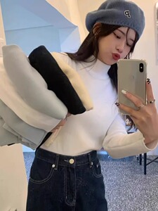 ベルベットは半高襟の純色を厚くして、ニットのシャツの女性の上着と秋冬の新型のベルベットの中にセーターを着る