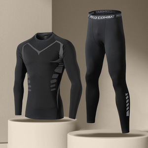 「速乾レオタードセット男性冬ランニングフィットネス訓練服秋冬スポーツ保温下着高弾打底