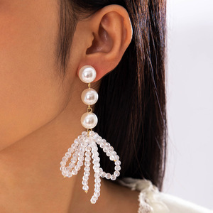 亚马逊跨境韩式山茶花仿珍珠花朵耳环时尚气质水滴耳坠长款耳饰女