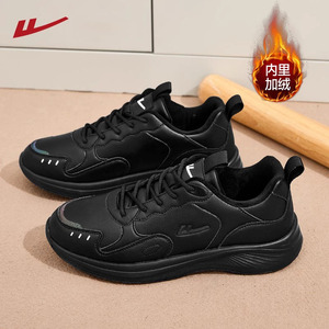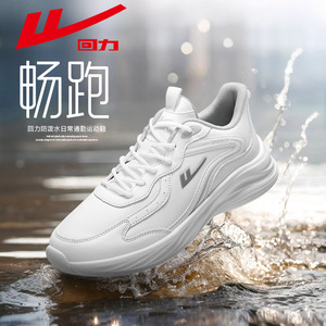 回力男鞋冬季皮面运动鞋新款防水泼白色休闲鞋子男减震软底跑步鞋