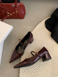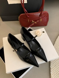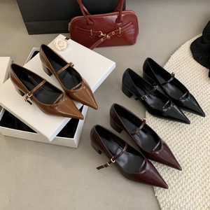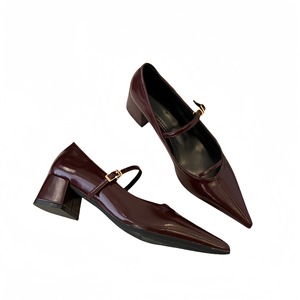 7711-27 ~ 太さとフランスの先の黒いメアリー珍の靴の女性の靴の2025年の新型のハイヒール