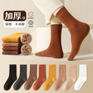 靴下の女性は冬にベルベットをつけて保温タオル靴下の女性の中筒月子靴下の冬の床の靴下の子供を厚くする