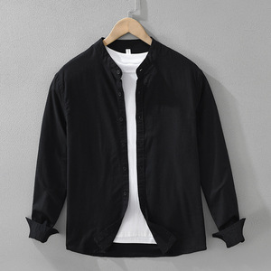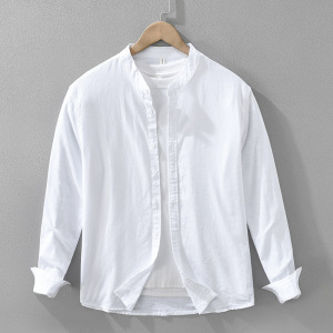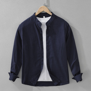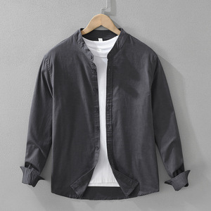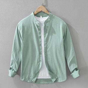 7368日系清新棉麻长袖衬衫男士百搭文艺休闲宽松立领上衣一件代发