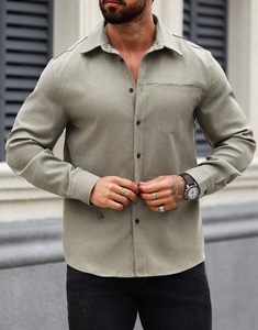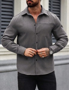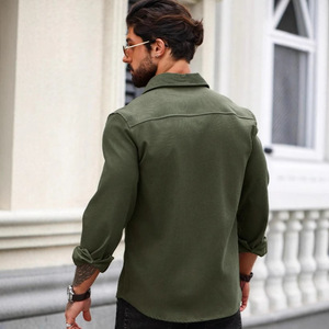 2024アマゾン速売通クロスボーダー新商品男性欧米純色ポケットシャツ秋長袖単列ボタンライニング