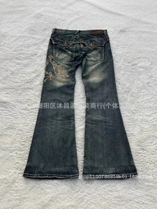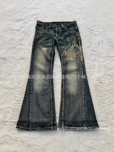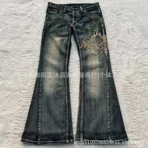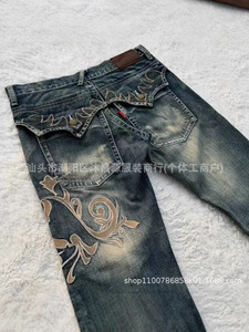 クロスボーダーの爆発物のレトロな水洗いは古いヒップホップマイクロラップジーンズの男女春秋の新型のやせている全刺繍のズボンを作ります。