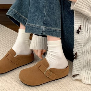 ファッションの軽やかなレトロな厚い底のベーケンの靴の女性2025新型の春と秋の外は高くなって、頭を漕ぐ頭のスリッパを履いています。