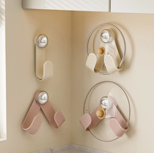 クリーム吸盤回転鍋蓋棚穴なし棚家庭用キッチン壁掛け調整鍋蓋収納棚