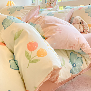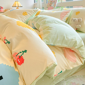 カテゴリーA 母子純綿4点セット 綿寝具 掛け布団カバー 掛け布団カバー ベッドシーツ 学生寮用3点セット ベッドシーツ