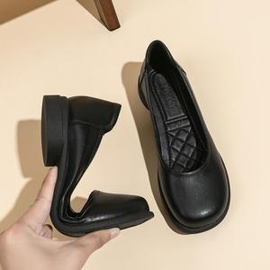 純黒色快適久駅疲れない足平底作業靴軟底面接職業出勤靴丸頭単靴女性タイプ