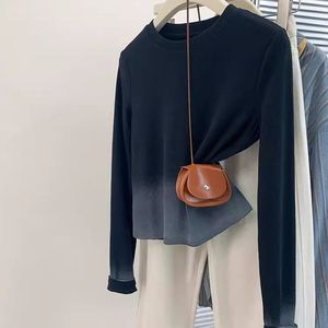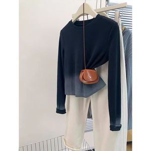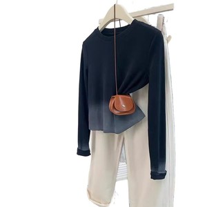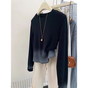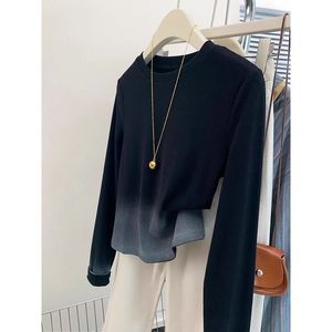 広州十三行女装黒グラデーション正肩長袖tシャツ女性秋デザイン感小衆痩せ独特上着