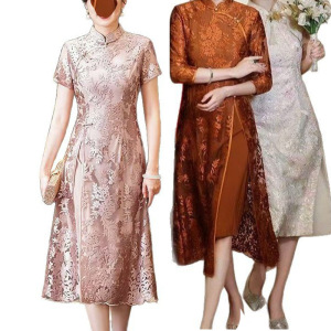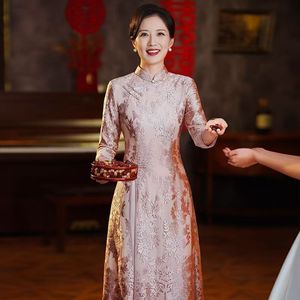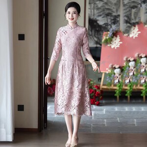 ピンク色の母親と義母のためのオーディドレス、チャイナドレス、新作ウェディングドレス、高貴なレースの結婚披露宴ドレス、春秋の普段着としても着用可能