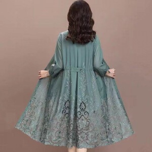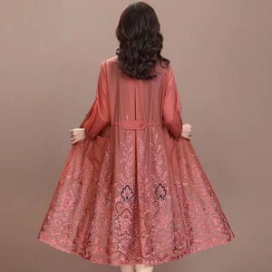背の高いトレンチコートの女性は長すぎて中が長いので、やせています。